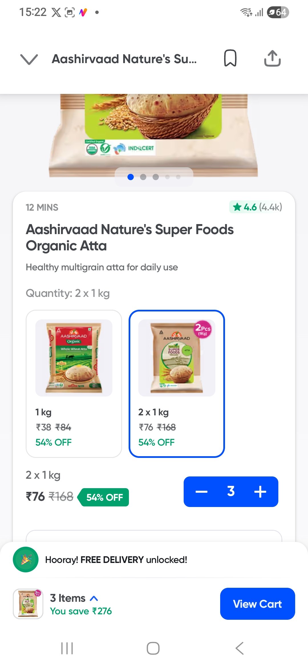 Get Aashirvaad Nature's Super Foods Organic Atta at a significant discount on Instamart. Enjoy organic goodness delivered to your doorstep.