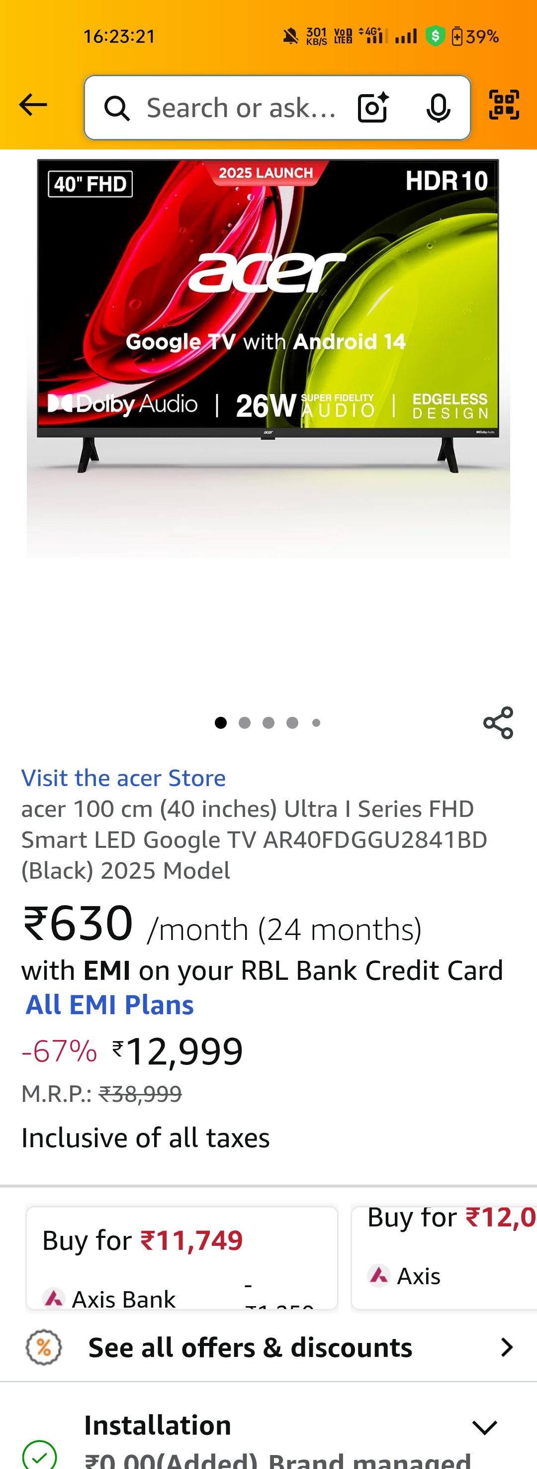 🔥 Deal Alert: Acer 40-inch FHD Smart Google TV (2025 Model) at just ₹11,749! 🔥