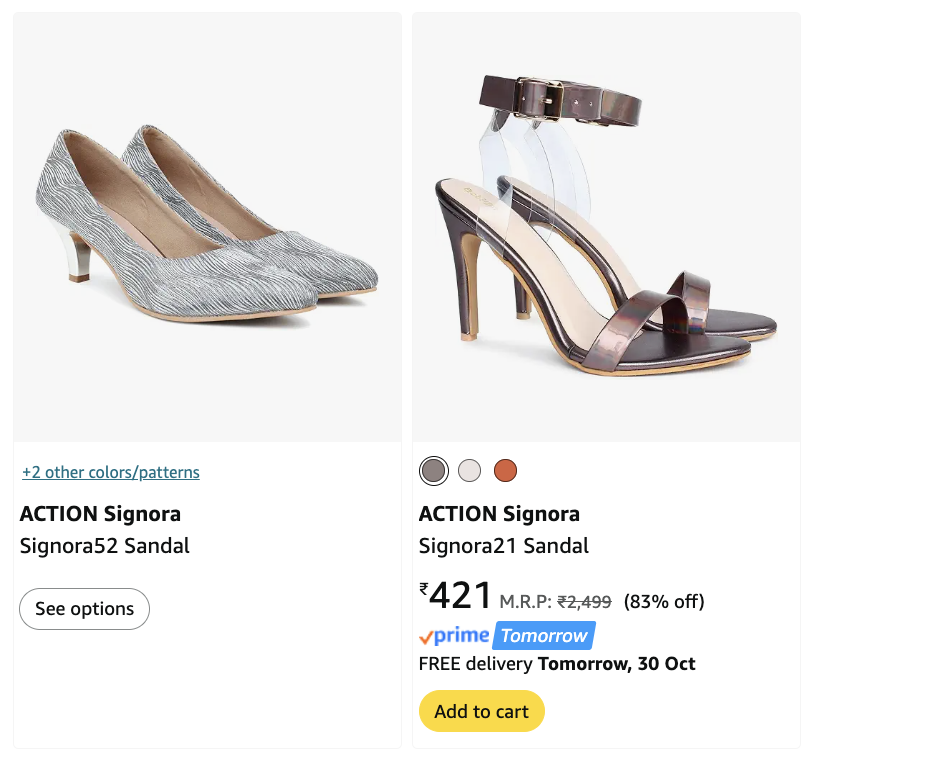 Elevate your style with ACTION Signora Sandal Heels for women. Get a massive 83% off on Amazon. Original Price: ₹2499, Deal Price: ₹421. These stylish heels are perfect for any occasion, offering both comfort and elegance. Don’t miss this limited-time offer!