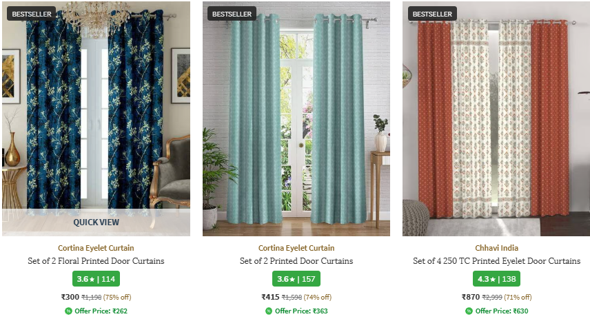 Upgrade your home decor with stylish door curtains from AJIO! Get an incredible discount of up to 75% off on a wide selection. Prices start as low as ₹300, down from a retail price of ₹1198. Don’t miss out on this limited-time offer to enhance your living space.