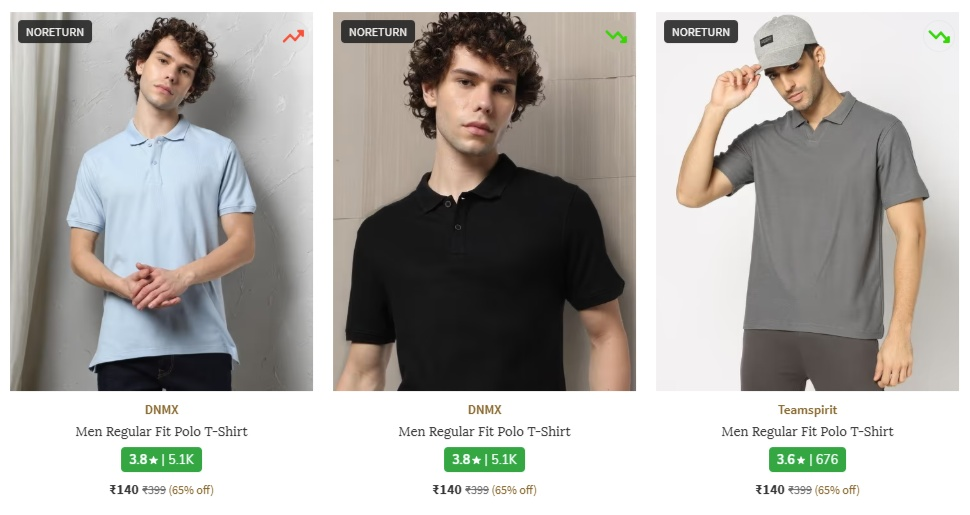- Starting Price: Find stylish polo T-shirts from just ₹140.