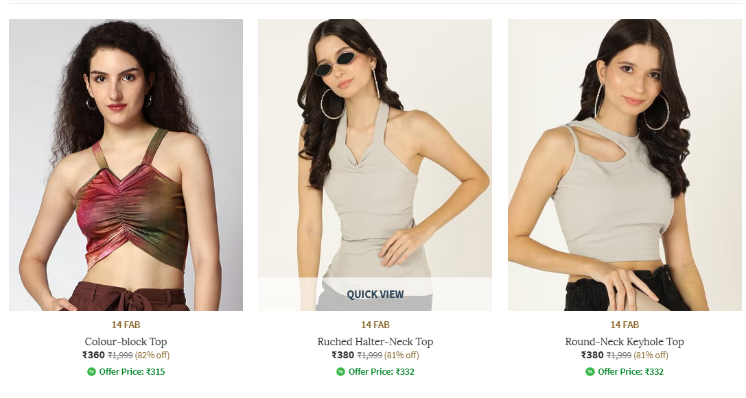 Discover trendy women's clothing from 14 Fab on Ajio with discounts of up to 82% off!