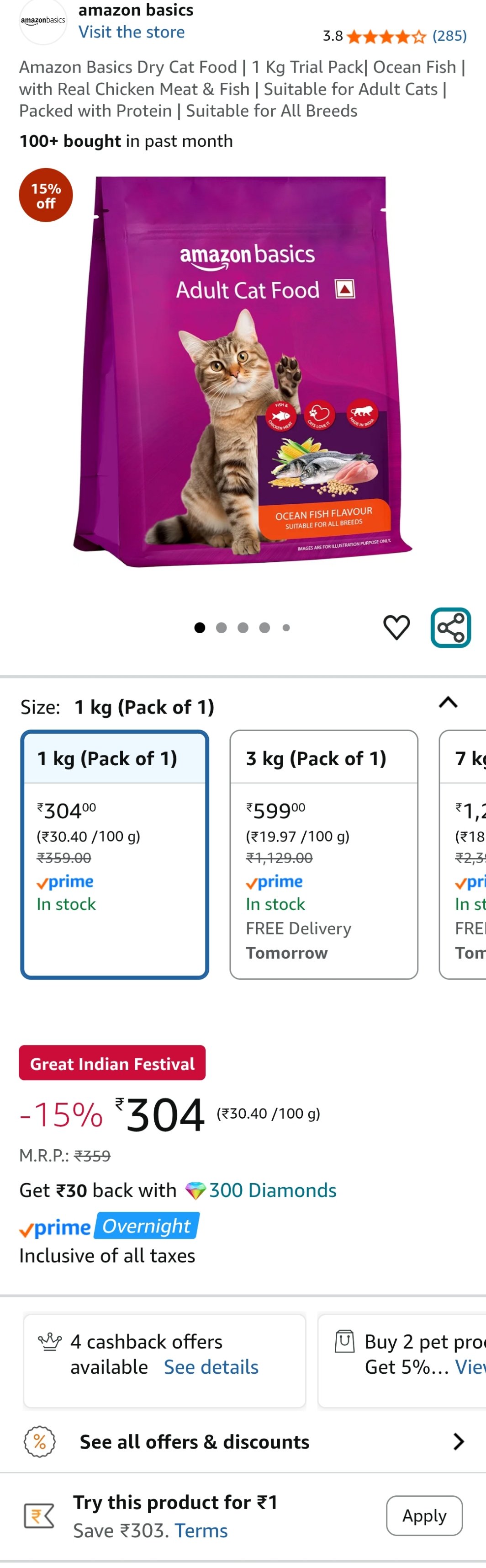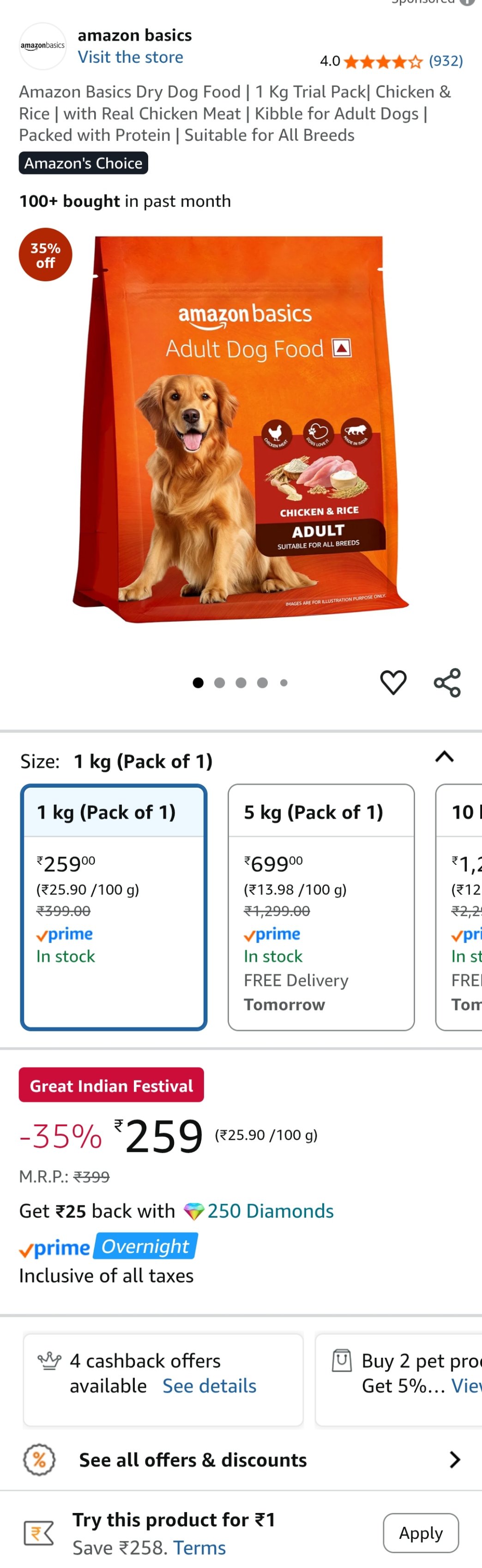 Grab the Amazon Basics 1KG Adult Dry Pet Food for Dogs and Cats at an incredible discount! This high-quality pet food is designed to meet the nutritional needs of your adult pets, ensuring a healthy and active life. Don't miss this limited-time offer to stock up on essential pet supplies.