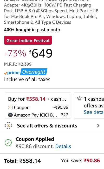 3. Get it for ₹558 or less when paying with an Amazon Pay ICICI Bank Credit Card.