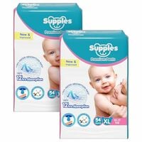 Grab a fantastic deal on Amazon Brand Supples Premium Baby Diaper Pants! Designed for comfort and superior protection, these XL size diapers (12-17 Kg) come in a pack of 108 (2x54) and offer up to 12 hours of absorption.