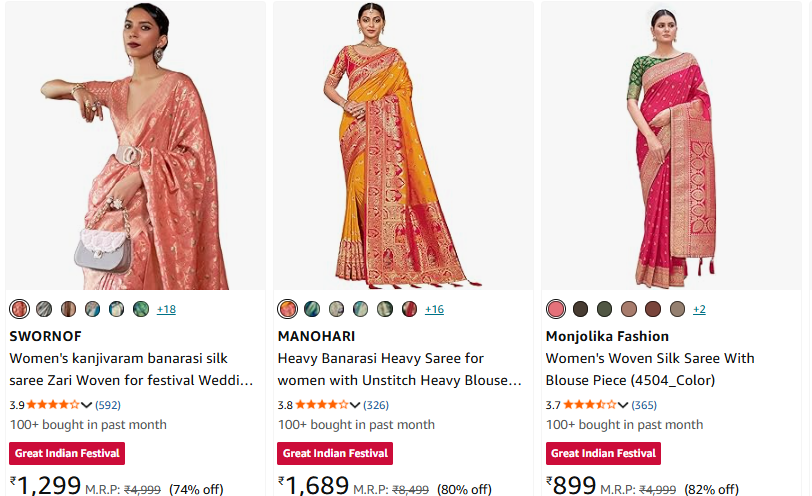 Elevate your ethnic style with exquisite Traditional Sarees, now available on Amazon with massive savings of up to 85% off! Find a diverse collection of elegant designs and vibrant colors perfect for any occasion. Prices start as low as ₹899.