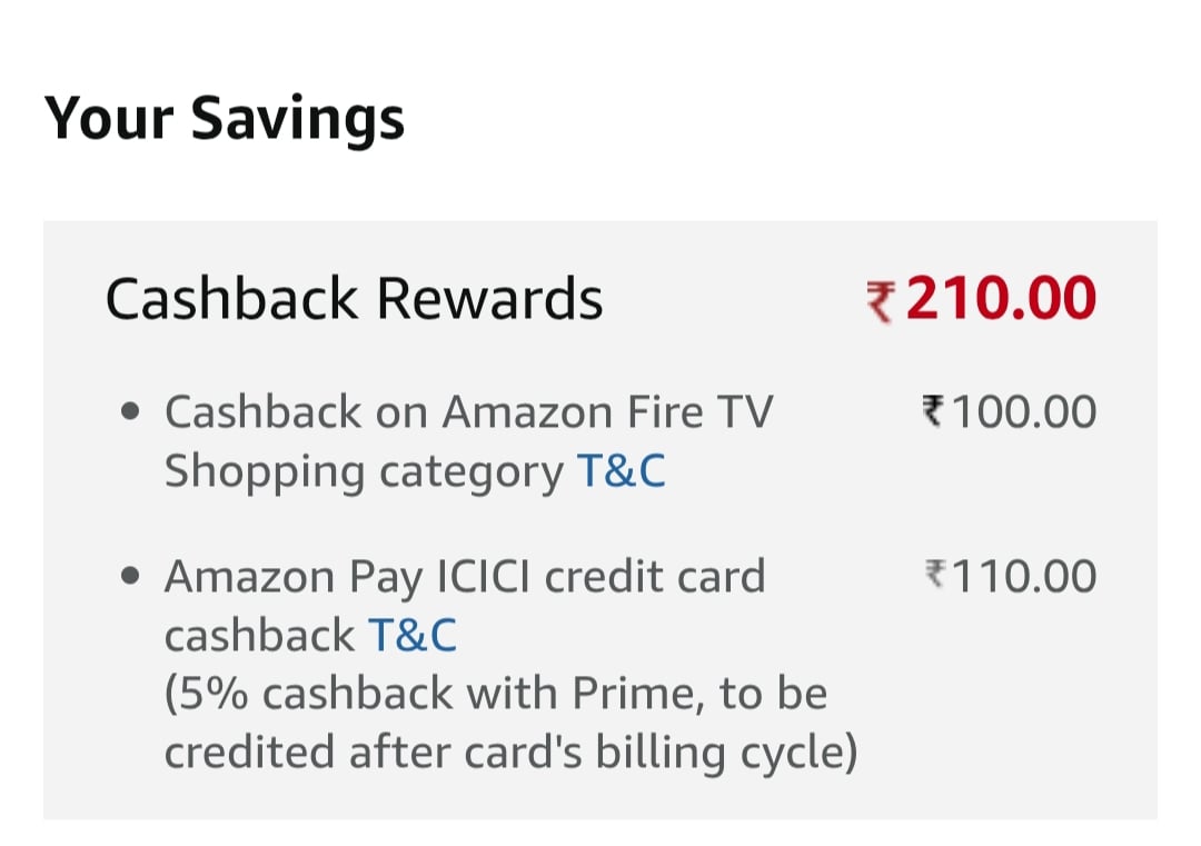 - Pay with your Amazon ICICI Credit Card to receive an additional ₹110 cashback.