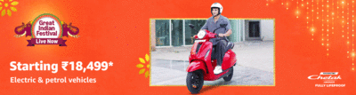 Unlock amazing savings on Bikes and Scooters during the Amazon Great India Festival! Purchase your preferred two-wheeler at prices significantly lower than showroom rates. Enhance your discount further by paying with an SBI Credit Card.