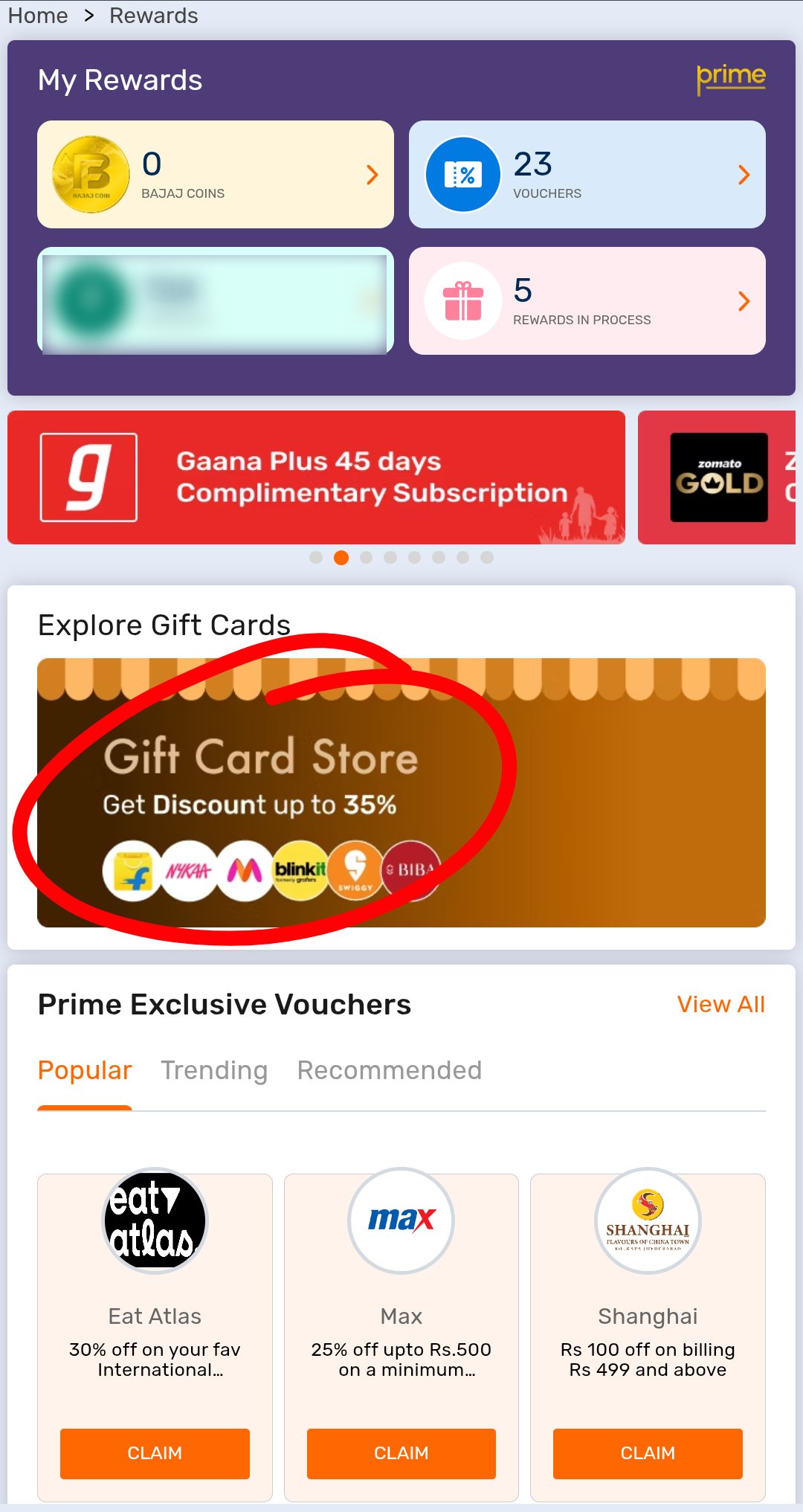 To avail this offer, navigate to the Prime section within your Bajaj Finserv app and look for the 'Gift Card Offer' banner. Vouchers are available in denominations ranging from ₹100 to ₹30,000.