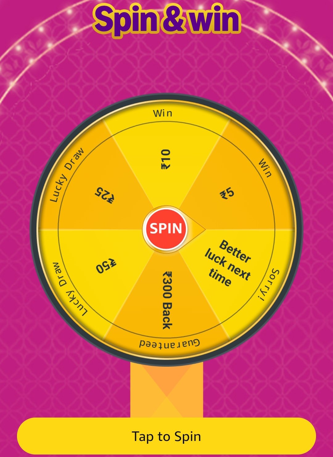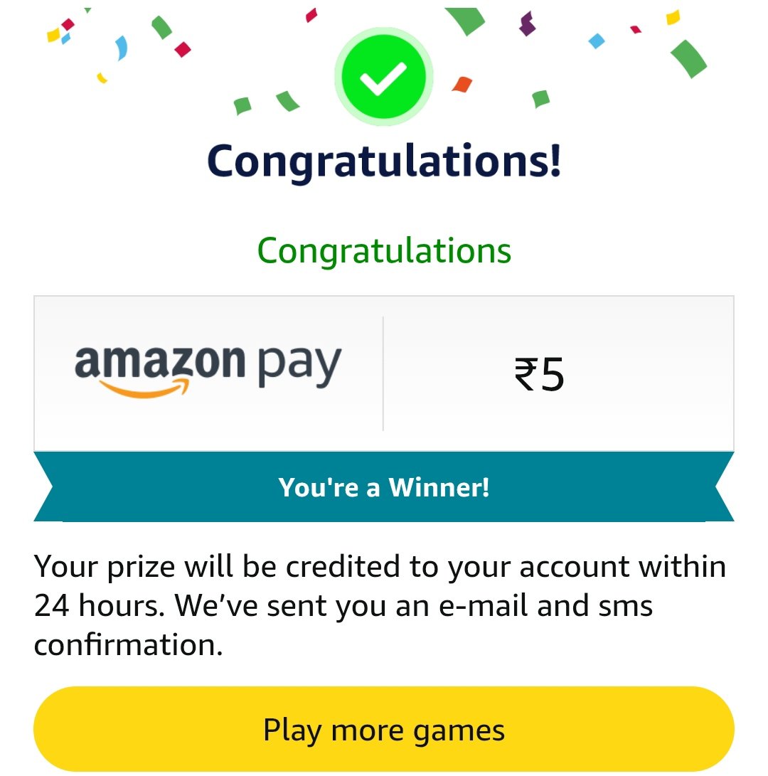 Participate in the Amazon Spin & Win offer to get a chance to win ₹5 or ₹10 Amazon Pay Balance. Additionally, earn ₹100 cashback on eligible orders of ₹350 or more across various categories.
