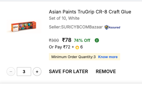 Get the Asian Paints TruGrip CR-8 Craft Glue Set of 10 (White) at an incredible 74% discount! Perfect for all your crafting, school, and DIY projects, this high-quality adhesive ensures strong bonds and easy application.