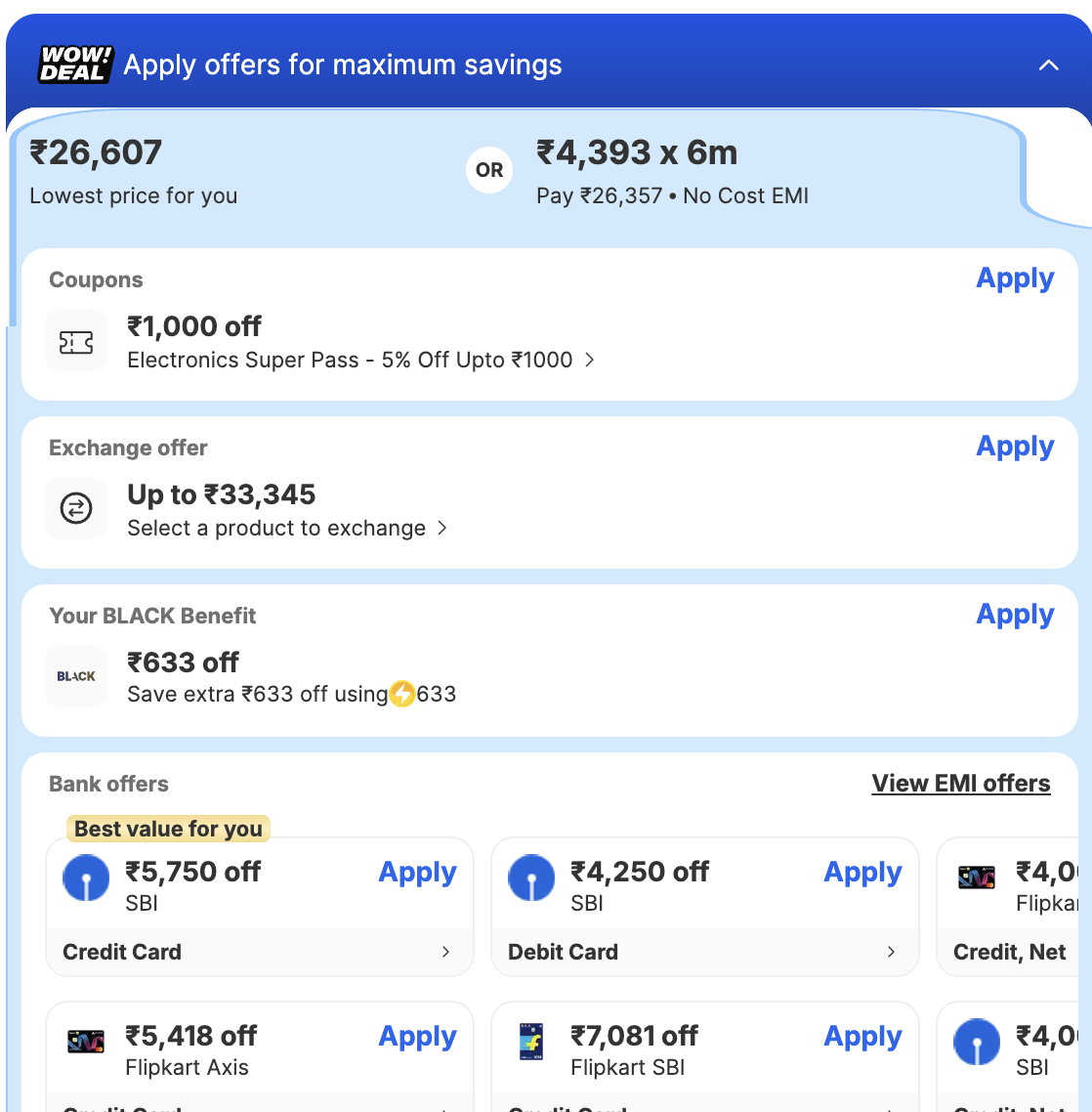 - Bank Offer: 5% cashback on Flipkart SBI Credit Card (up to ₹4,000 per calendar quarter).