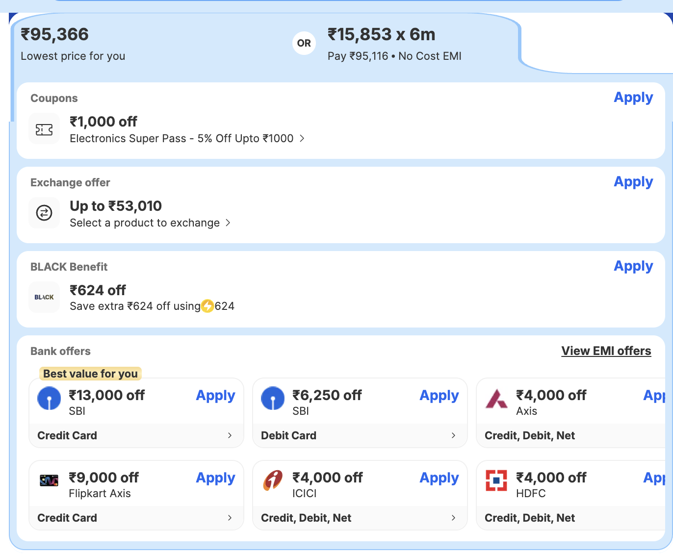 - Bank Offer: 5% cashback on Flipkart SBI Credit Card up to ₹4,000 per calendar quarter.