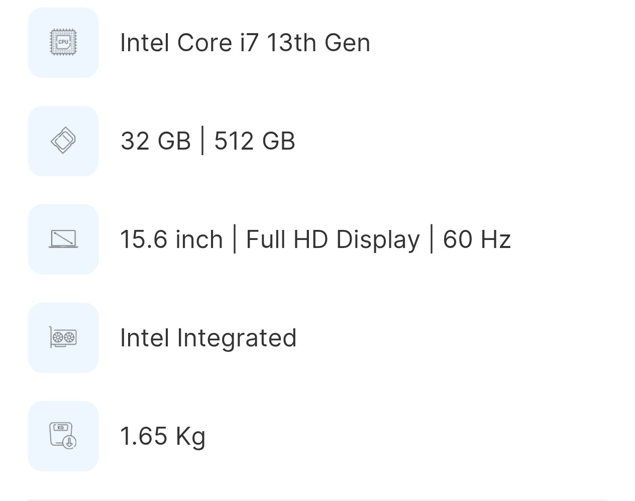This powerful laptop features an Intel Core i7-13620H 13th Gen processor, paired with a generous 32 GB RAM and a speedy 512 GB SSD for seamless multitasking and rapid data access. It comes pre-installed with Windows 11 Home, making it perfect for both productivity and entertainment.