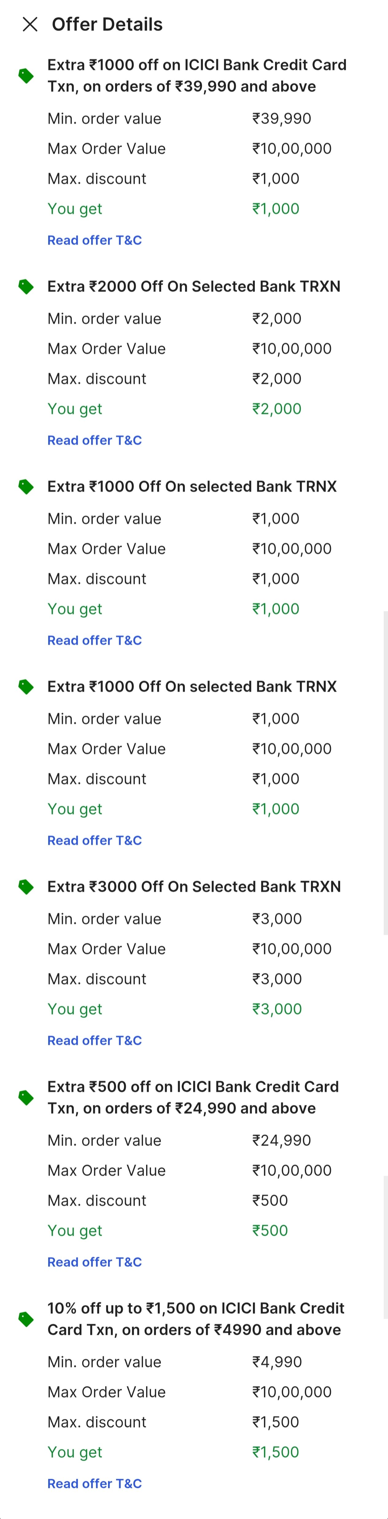 Grab an additional ₹10,000 instant discount when you pay using Axis Bank or ICICI Bank Credit Cards.