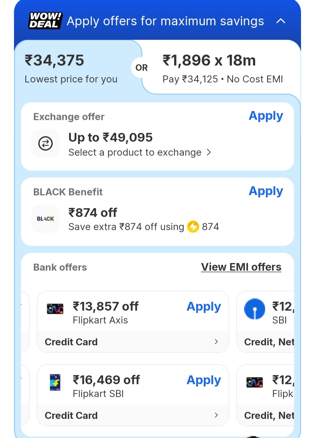 - Extra ₹16,469 off with Flipkart SBI Credit Card.