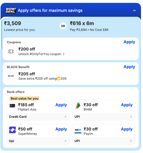 - 10% off up to ₹1,500 on HDFC Bank Cardless EMI (orders ₹4990+).