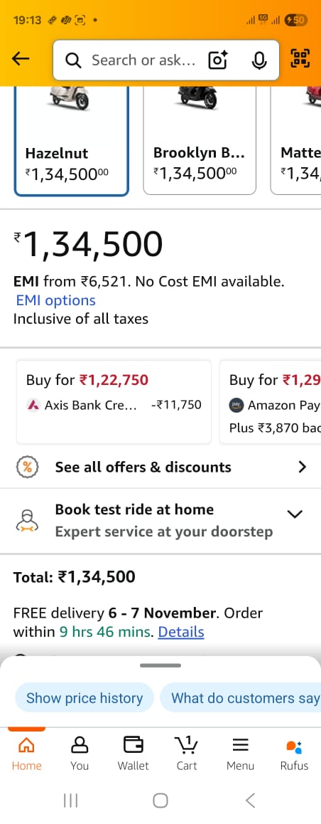 - Design & Build: Features a durable metal body, FOB key, and a vibrant TFT Touch Screen. Offers a generous 35-litre boot space and 90/90 - 12” tyres (front & rear). Braking system includes a front disc and rear drum.