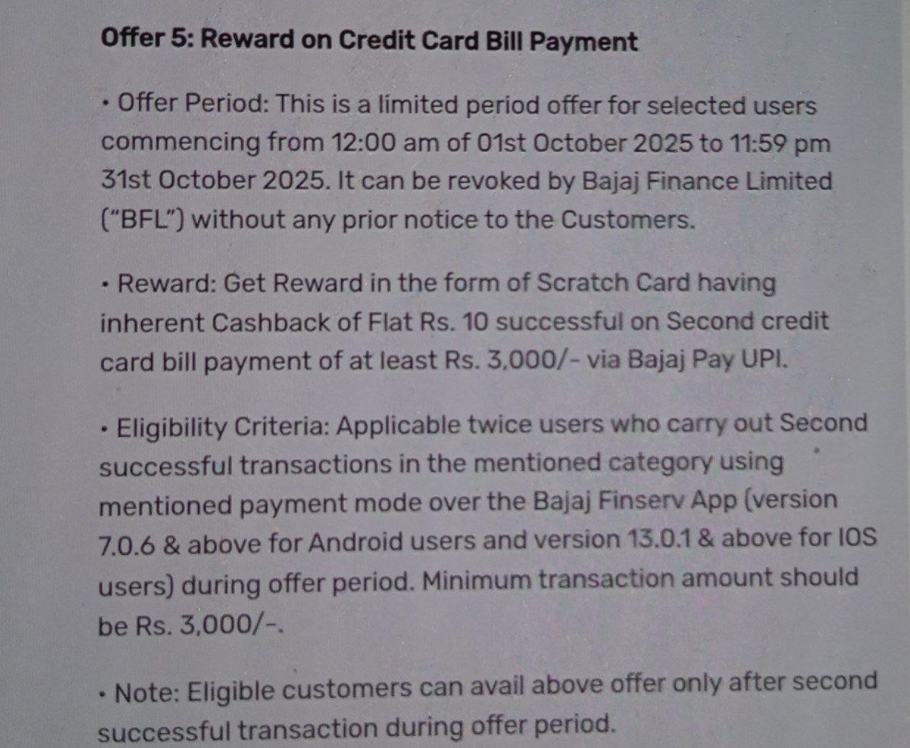 Get assured cashback from Bajaj Finserv on your credit card bill payments via Bajaj UPI! Earn flat ₹20 on your first payment, and ₹10 each on your second and third payments, totaling up to ₹40 cashback.