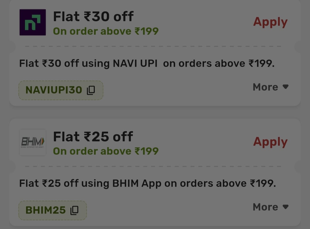 - Navi UPI Offer: Get ₹30 cashback on minimum order of ₹199.