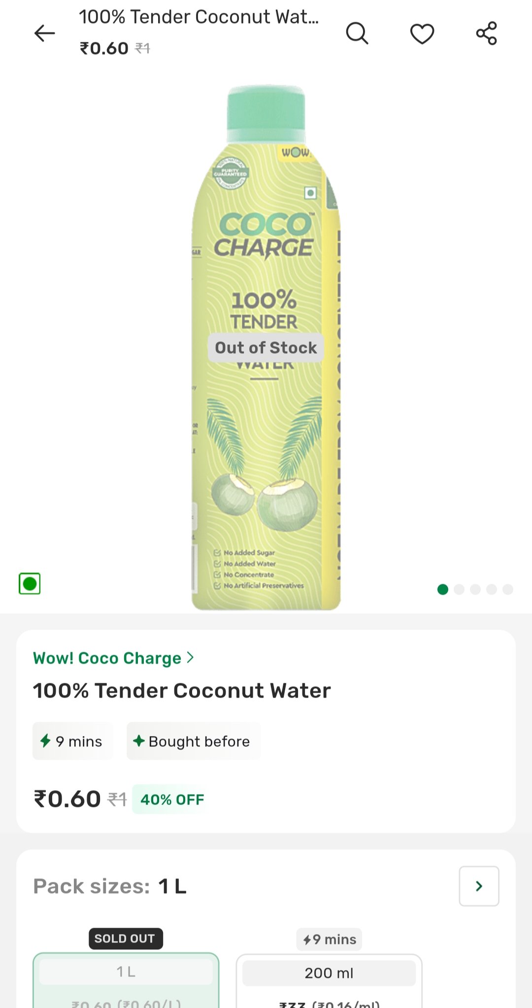Grab this amazing Bigbasket loot deal! Get WOW Coco Charge 100% Tender Coconut Water (1L) absolutely free with a 100% discount. Don't miss out on this limited-time offer.