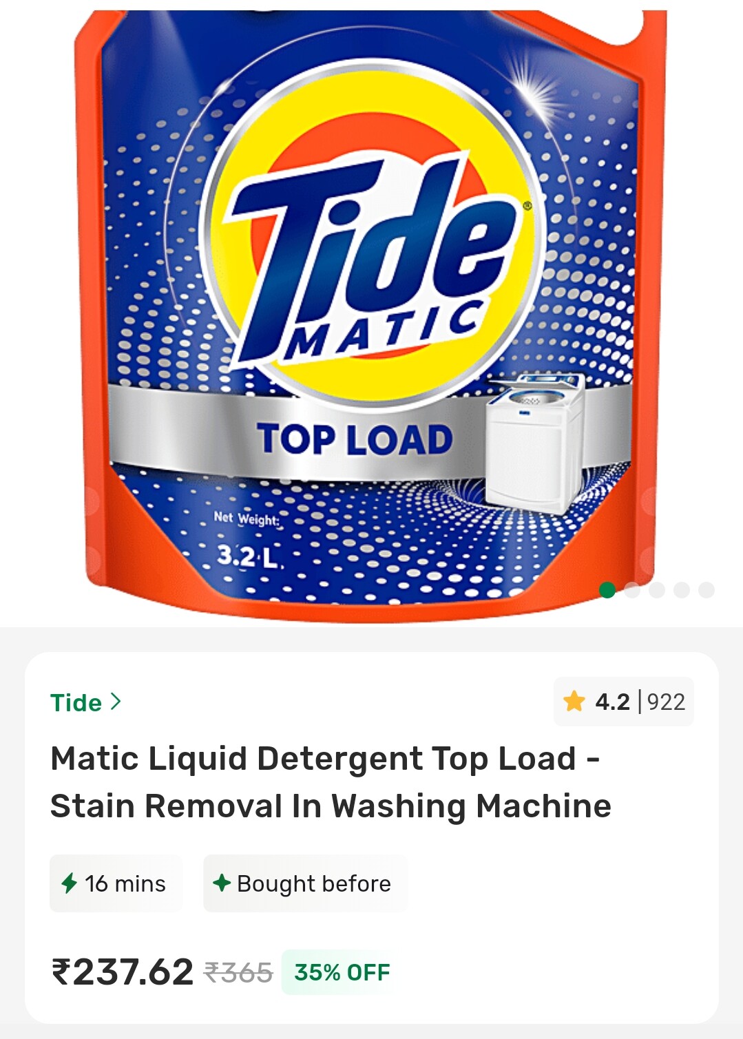 Get Tide Matic Liquid Detergent (3.2L) for just ₹223 on Bigbasket!