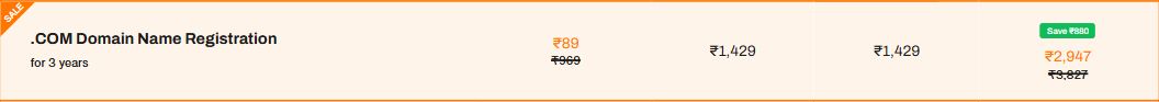 Grab an exclusive offer on .COM domain registration from BigRock! Get your desired .COM domain name for just ₹89, a massive 91% discount off the retail price of ₹969.