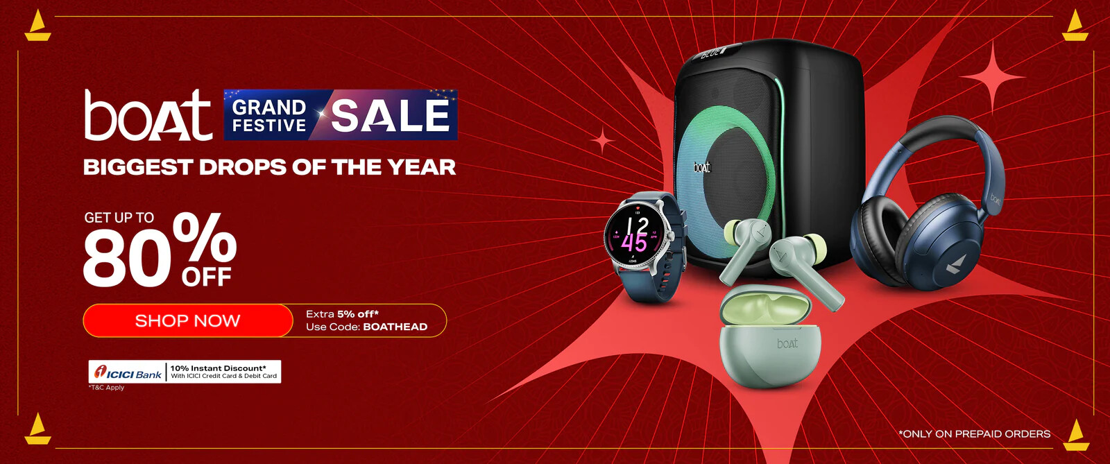 Dive into the Boat Grand Festive Sale and enjoy massive savings on your favorite audio and wearable tech! Get Up To 80% Off on a wide range of products.