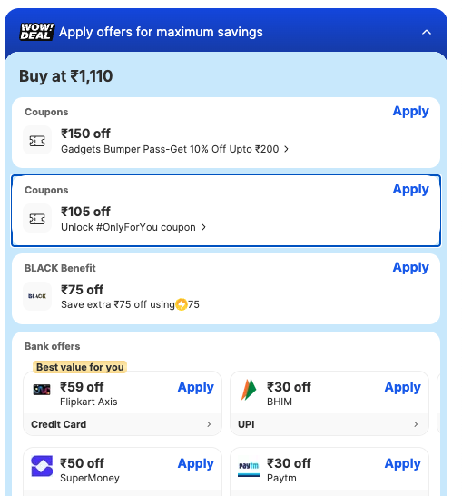 - Partner Offer: Buy this & Get 5% off up to ₹750 on furniture (user-specific).