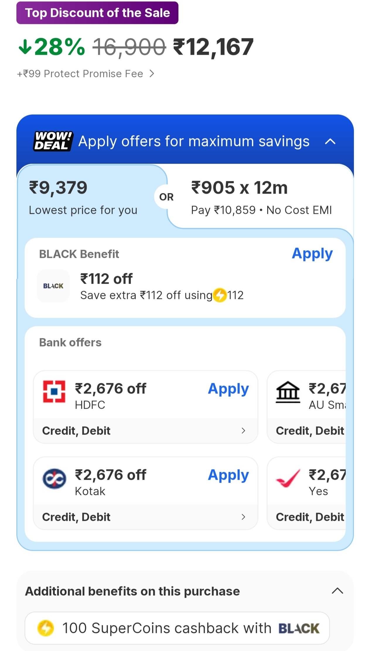 - HDFC/Kotak/YES/AU Small Finance Bank Credit Cards: ₹2676 instant discount.