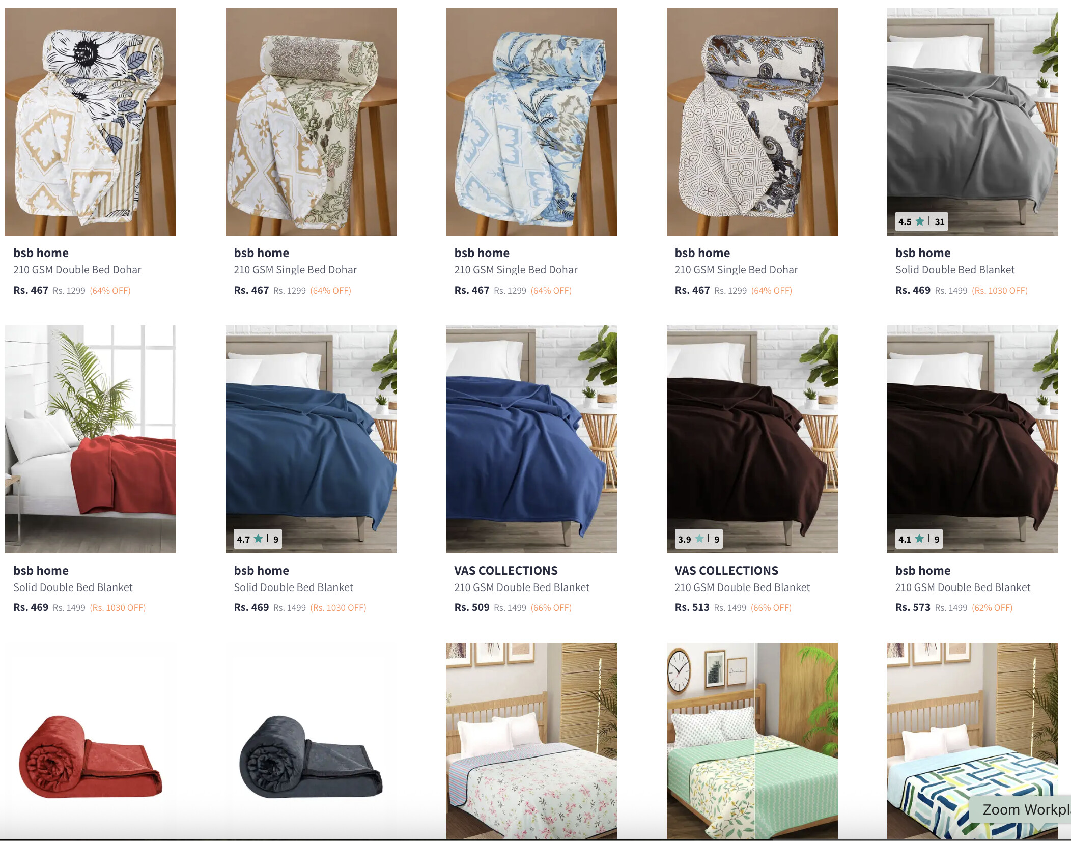 Grab incredible savings on BSB Home Double Bed Blankets! Get up to 64% off on a stylish range of double bed blankets, now available on Myntra. Prices start from just ₹467 (original retail price ₹1299), allowing you to save significantly on high-quality home furnishings.