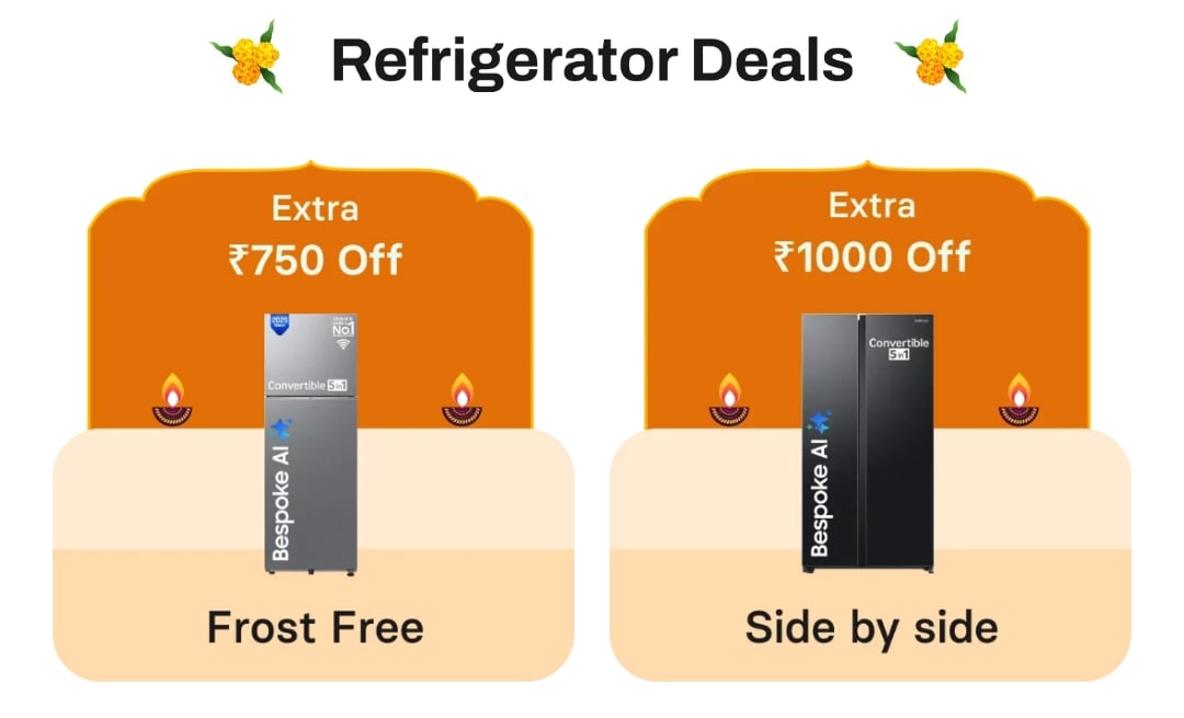 - Side-by-Side Refrigerators: ₹1000 off (using 100 CheQ chips)