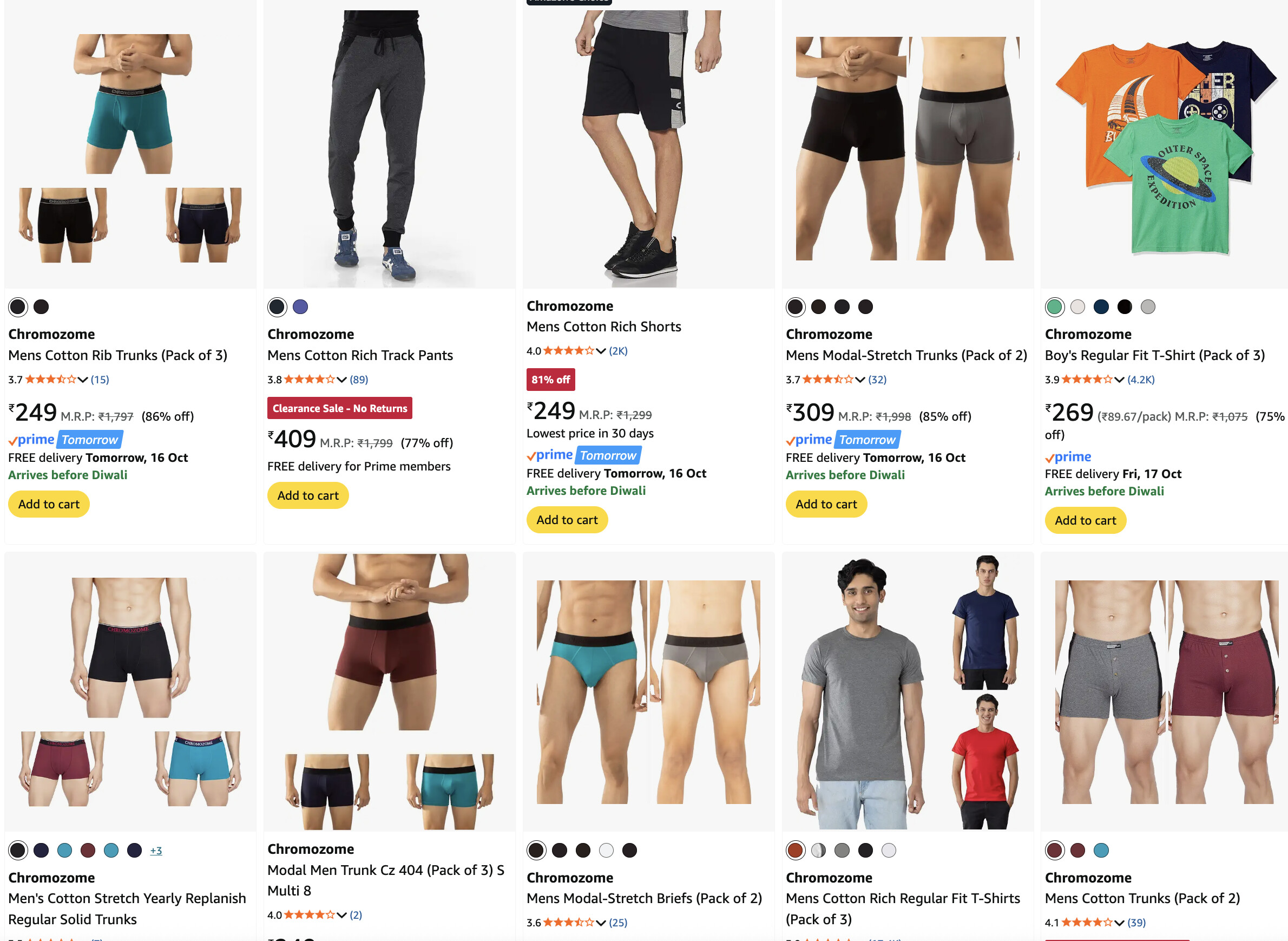 Upgrade your essentials with Chromozome innerwear! Enjoy incredible discounts of up to 88% off on a wide selection of styles. Shop now on Amazon India for high-quality innerwear at unbeatable prices.