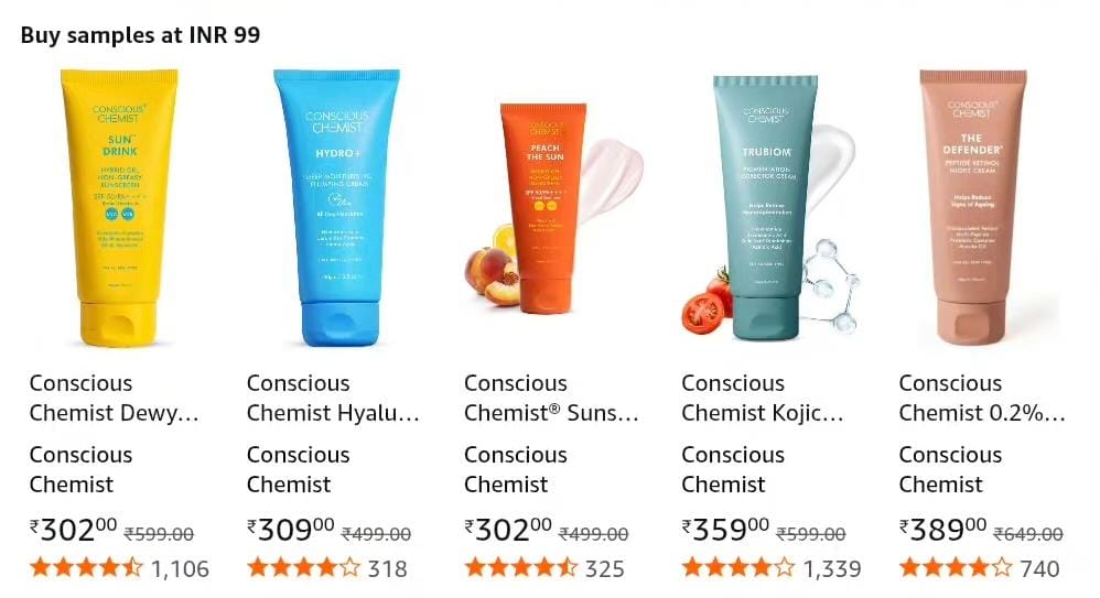 - Sample Products: Get trial sizes starting at an attractive price of ₹99.