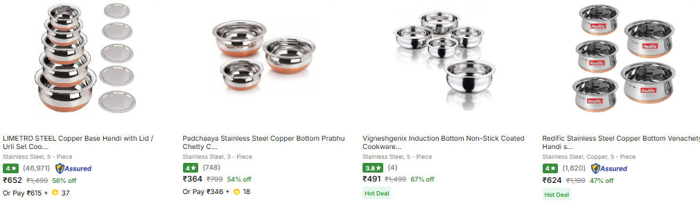 Grab incredible deals on Cookware Sets! Enjoy discounts of up to 72% off, with prices starting from just ₹364.