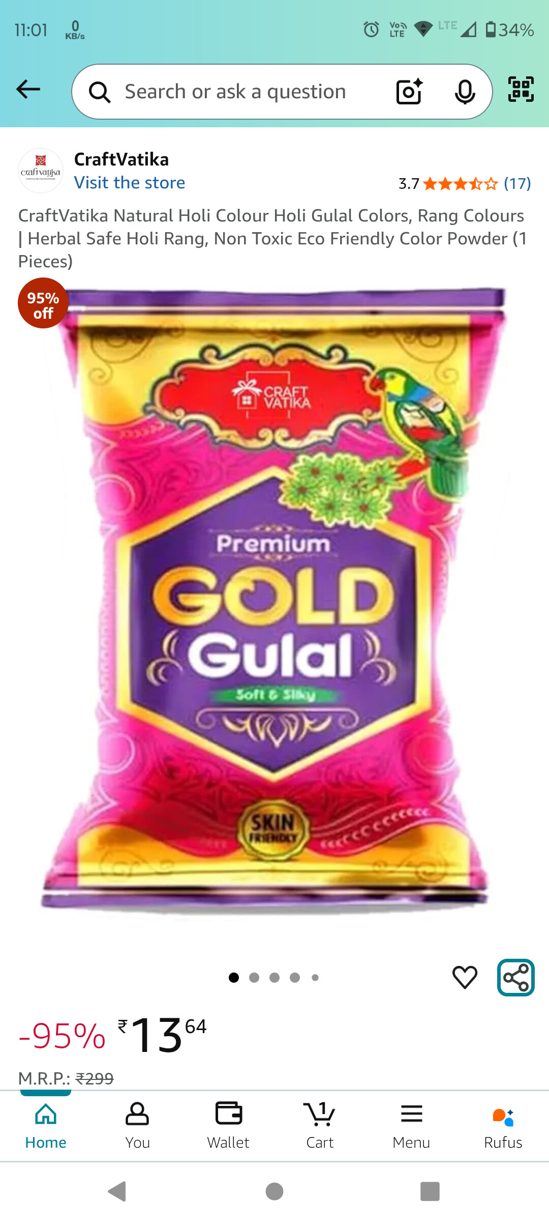 Get the CraftVatika Perfumed Gold Gulal at an incredible price of just ₹13 per piece! This deal requires a minimum purchase of 5 pieces. Enjoy a massive 96% discount on Amazon India. These natural and skin-friendly perfumed colors are perfect for festive occasions.