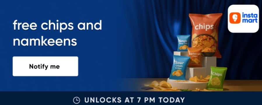 Cred members, prepare for a special offer! On September 26th at 7 PM IST, Cred users can unlock and claim free chips and namkeens through Instamart.