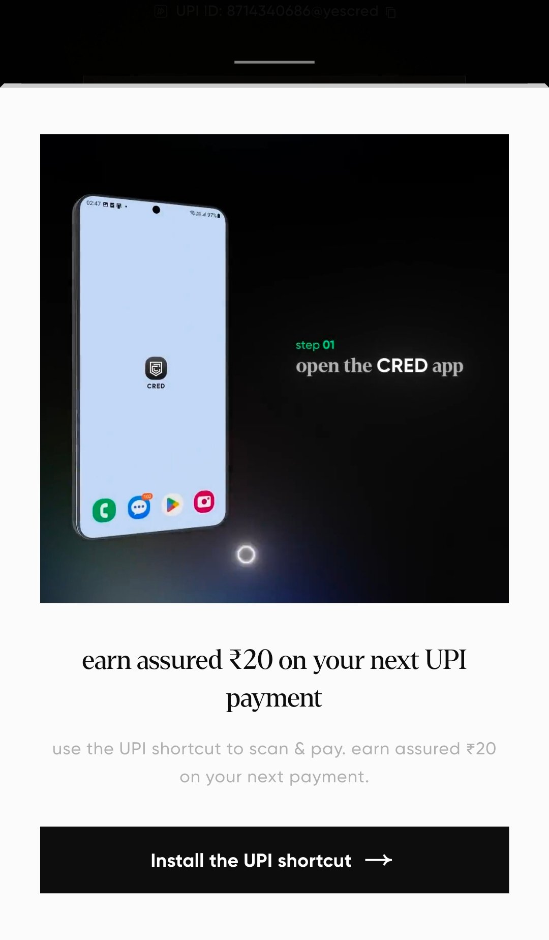 This offer is primarily for users who have not previously installed or used the Cred UPI shortcut widget.