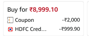 - Offer Price: ₹8,999 (After ₹2,000 coupon discount and ₹1,000 off with HDFC Credit Card)