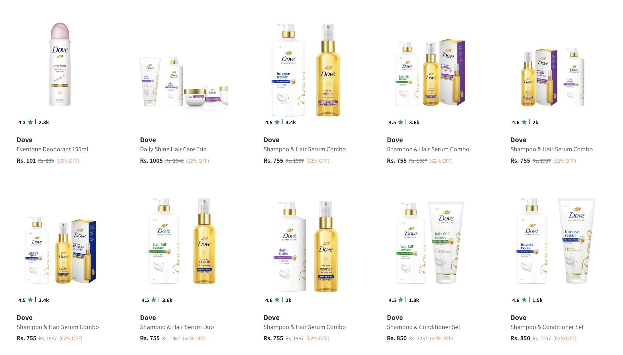 Shop now: Myntra Dove CollectionGet up to 65% off on a wide range of Dove hair care products, including shampoos, conditioners, and more, available on Myntra. Enhance your hair care routine with quality products at incredible prices.