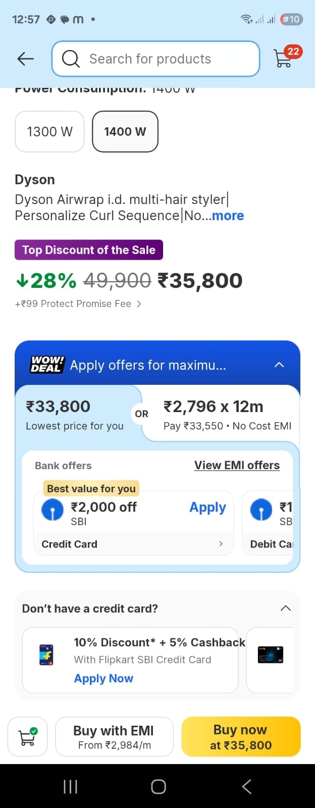 - Bank Offer: 5% cashback on Flipkart SBI Credit Card up to ₹4,000 per calendar quarter