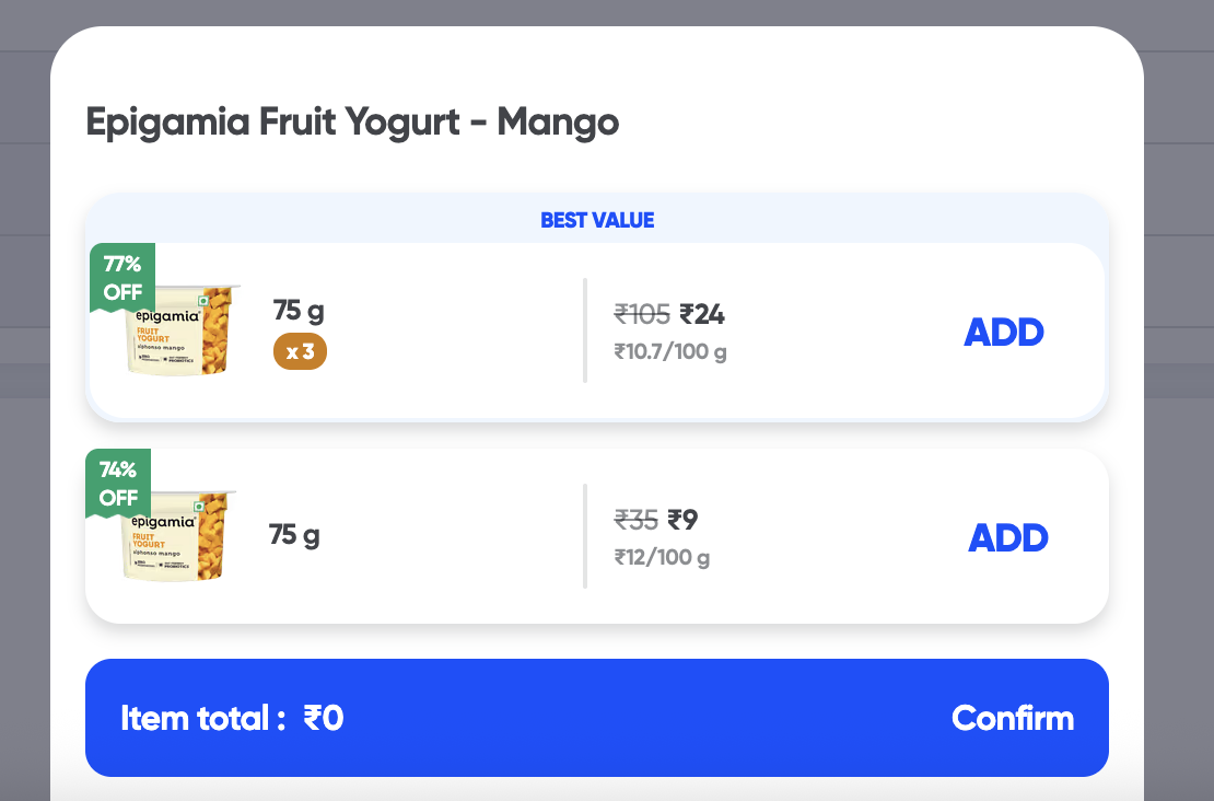 Grab Epigamia Fruit Yogurt for just ₹9 on Swiggy Instamart! Enjoy a fantastic 74% off the retail price of ₹35.