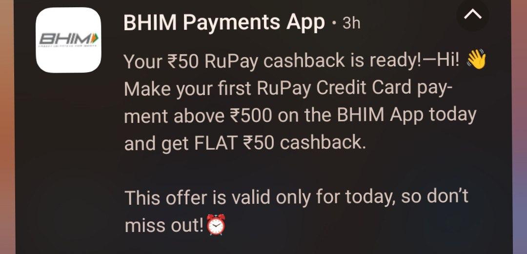 - Eligibility: Valid only for the customer's first-ever RuPay Credit Card bill payment on BHIM.