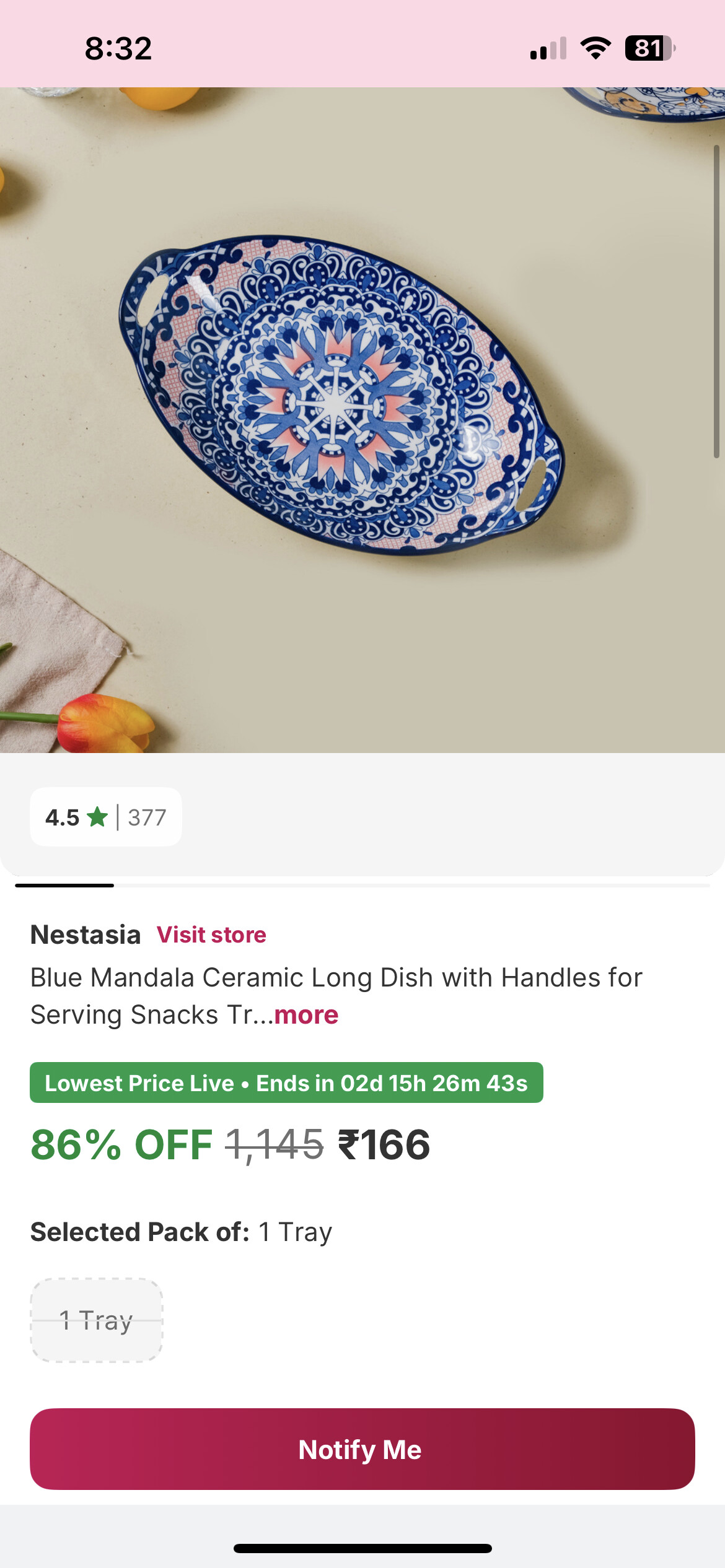 Discover a wide range of elegant and stylish items from Nestasia with discounts of up to 90% off the retail price. For example, find products starting from just ₹152, originally priced at ₹1550.