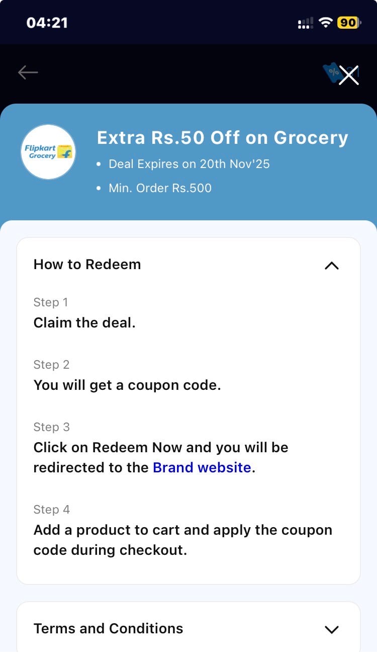 - Eligibility: Valid only on Flipkart Grocery products.