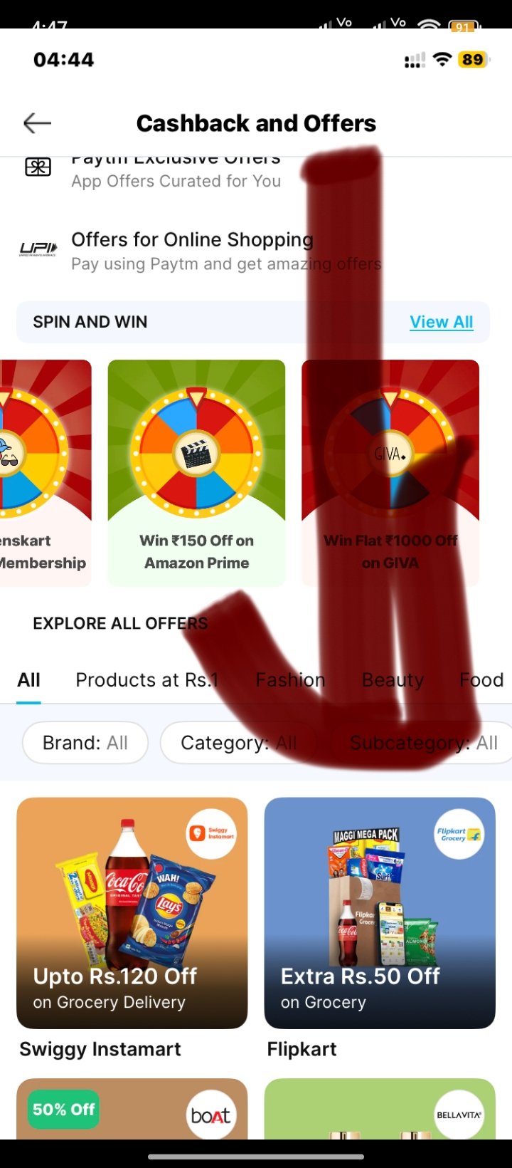 - Claim your unique Flipkart Grocery coupon on Paytm (available in the Cashback & Offers section under 'Food').