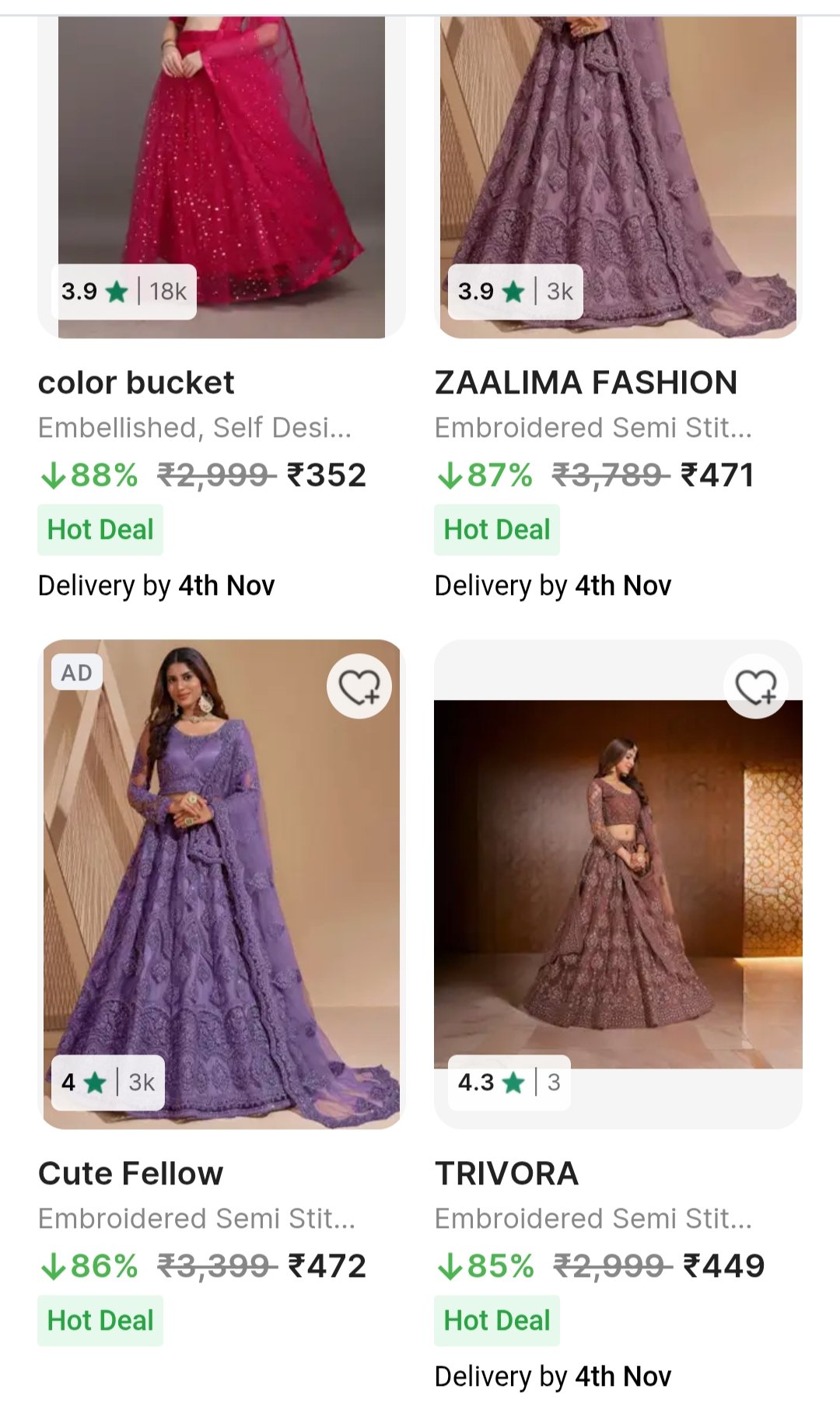 Discover a wide range of elegant Lehenga Cholis on Flipkart with incredible savings! Get up to 89% off on various styles, with prices starting from just ₹399. Perfect for festive occasions, weddings, or traditional wear. Don't miss out on this limited-time offer to enhance your ethnic wardrobe at unbeatable prices.