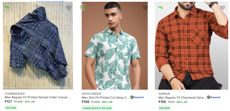 Grab stylish men's shirts on Flipkart with discounts ranging from 70% to 85% off! Prices start at just ₹127.