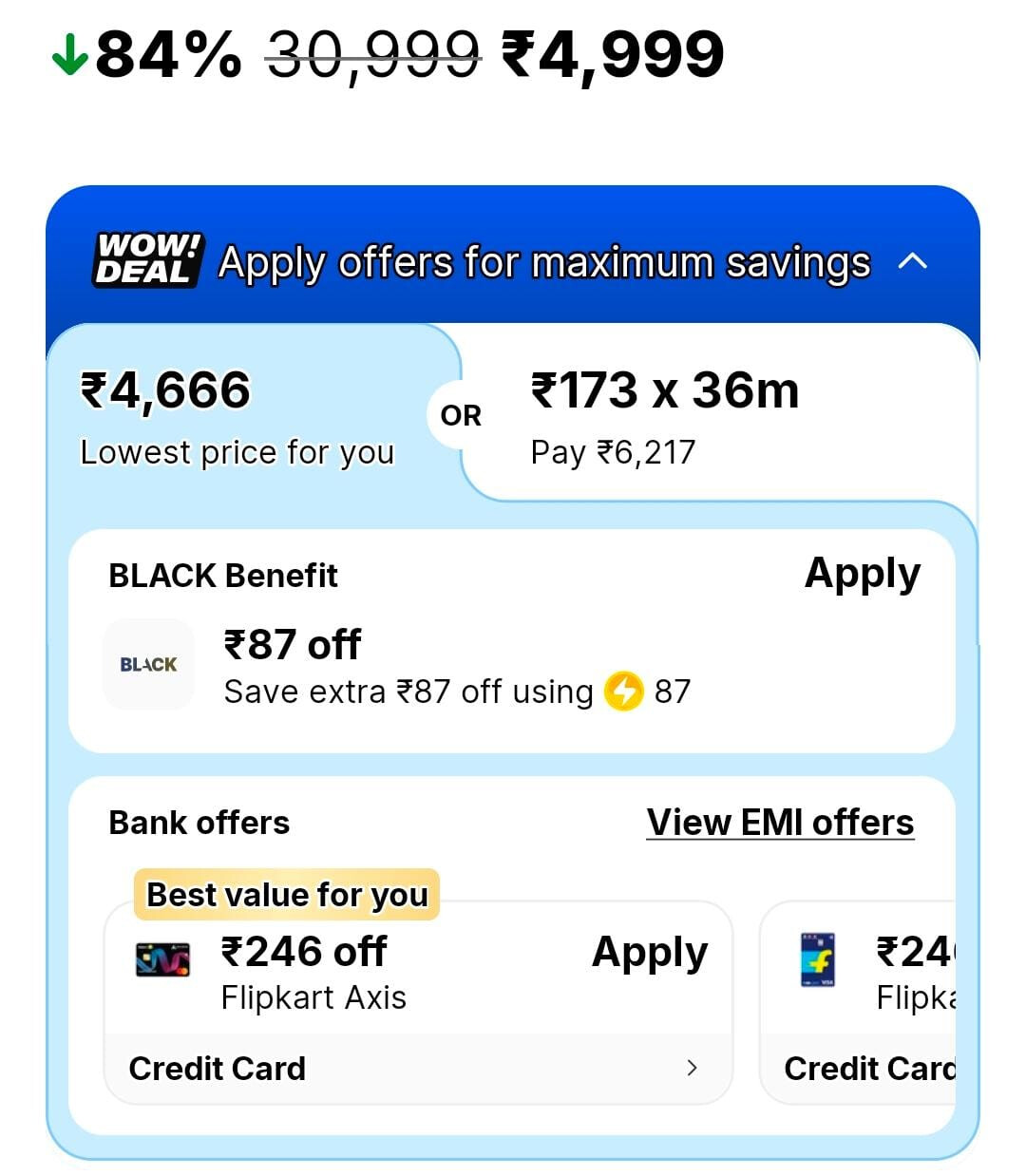 - Bank Offer: 5% cashback on Flipkart SBI Credit Card up to ₹4,000 per calendar quarter