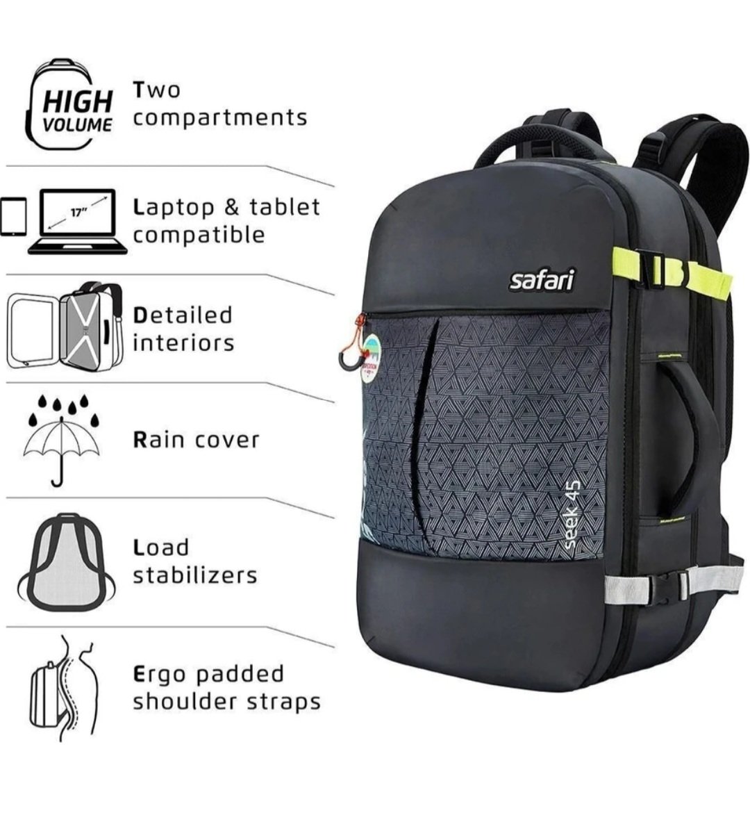 Get the Seek Expandable 45L Laptop Backpack with a dedicated suitcase compartment from Flipkart. Originally ₹5099, now available for just ₹1234 after SuperCoins discount. A spacious and versatile backpack for all your travel and daily needs, featuring ample storage and a smart design.